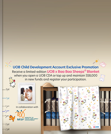 Wrap your little one in comfort and joy this holiday season. Receive a limited-edition Baa Baa Sheepz® Blanket worth S$49 when you open a UOB CDA or switch your child’s CDA to UOB! No registration or minimum top-up required.![]()