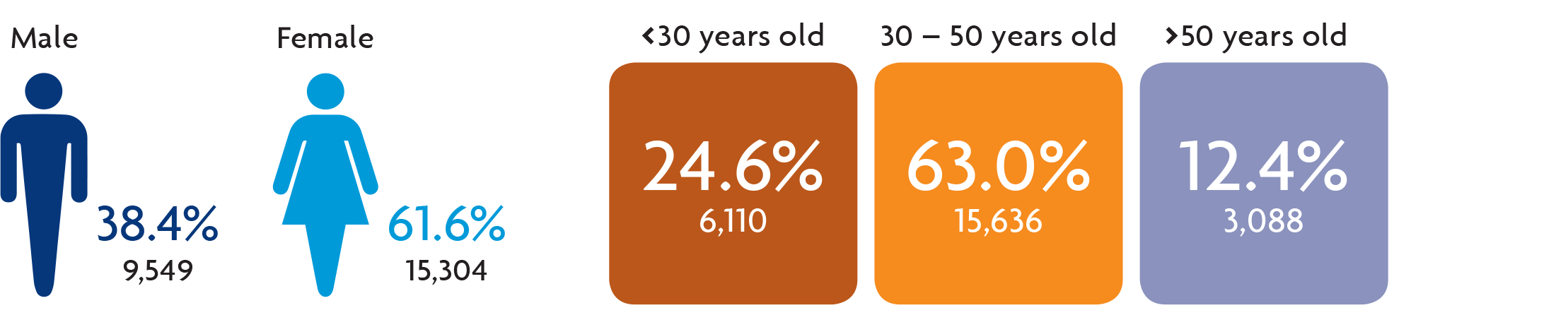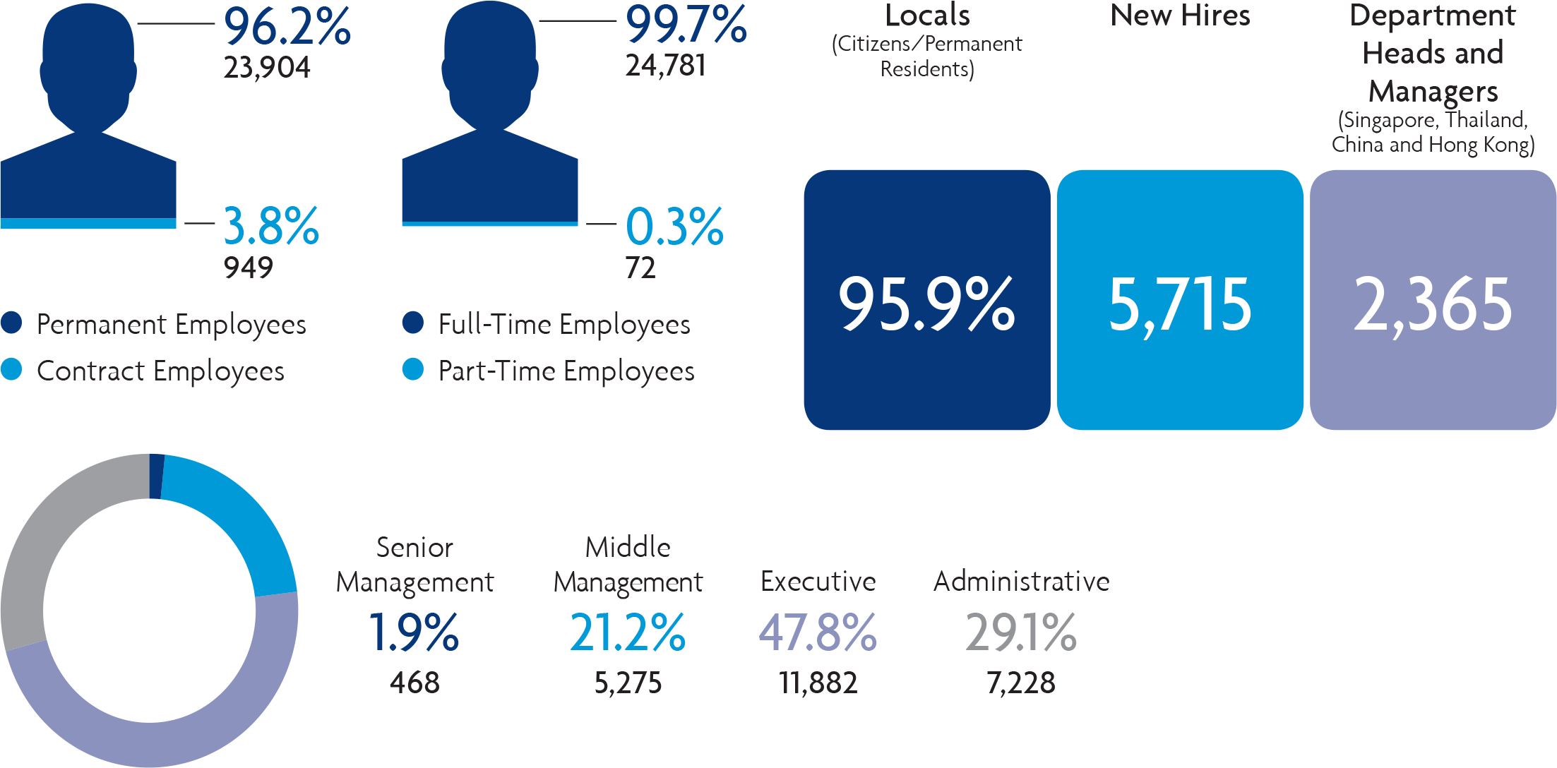 | Permanent Employees | Contract Employees | < 30 years old | 30 - 50 years old | > 50 years old | |