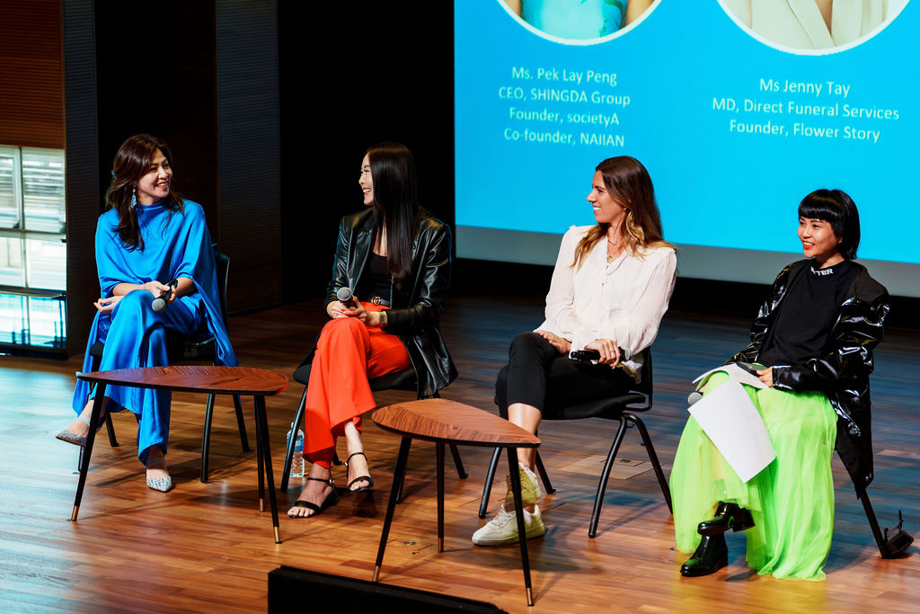 Panelists Ms Pek Lay Peng, Ms Jenny Tay, Ms Clare Leighton and Ms Evangeline Leong shared their insights on leadership and building a resilient, purposeful business.