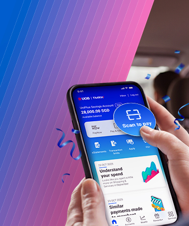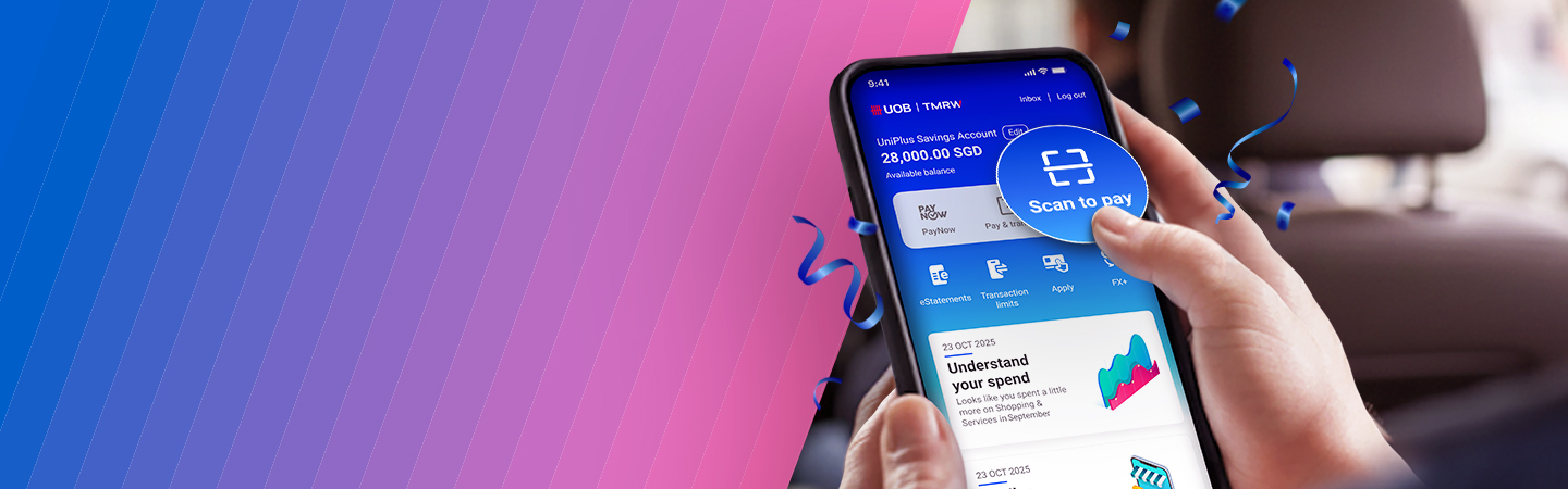 This promotion is valid from 15 October 2025 to 6 January 2026, both dates inclusive (the “Promotion Period”). To be eligible to receive a S$5 cashback for each ComfortDelGro taxi ride during the Promotion Period, you must (i) be a primary accountholder of a UOB personal savings account* in Singapore during the Promotion Period, (ii) successfully register to participate in this promotion via either the promotion registration webpage available on UOB’s website or the Rewards+ on your UOB TMRW during the Promotion Period and (iii) successfully make payment for the ComfortDelGro taxi ride, either when you street-hail or by selecting “Pay Onboard” as your payment mode when you make a booking on ComfortDelGro’s ZIG app, via scanning the NETS QR Code on the payment terminal available in the ComfortDelGro taxi through the use of the Scan to pay function on your UOB TMRW and your payment for the ComfortDelGro taxi ride must successfully be posted on UOB’s system and reflected in the transaction history or statement of your UOB personal savings account* with the reference “Comfort Tax” or “ComfortDelG” indicating the payment as a payment for ComfortDelGro taxi ride. If you are either a New PIB User or a Dormant PIB User, you will automatically participate in this promotion without having to register to participate in this Promotion. Further, as a New PIB User or a Dormant PIB User, you are eligible to receive a S$10 cashback (instead of a S$5 cashback) for your first ComfortDelGro taxi ride during the Promotion Period, which you successfully make payment for the ComfortDelGro taxi ride by scanning the NETS QR Code on the payment terminal available in the ComfortDelGro taxi through the use of the Scan to pay function on your UOB TMRW and your payment for the ComfortDelGro taxi ride must successfully be posted on UOB’s system and reflected in the transaction history or statement of your UOB personal savings account* with the reference “Comfort Tax” or “ComfortDelG” indicating the payment as a payment for ComfortDelGro taxi ride. You are only entitled to receive an aggregate maximum of S$30 as cashbacks under this promotion and the cashback(s) will be credited into your UOB personal savings account*, which has the highest account balance, within two months after the Promotion Period. “New PIB User” means a customer who do not have UOB Personal Internet Banking prior to the commencement of the Promotion Period and you must have successfully apply for UOB Personal Internet Banking and set up your UOB TMRW during the Promotion Period, while “Dormant PIB User” means a customer who have not logged-in to both his/her UOB Personal Internet Banking and UOB TMRW within the last three months prior to the commencement of the Promotion Period. This promotion is subject to full T&Cs here.