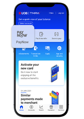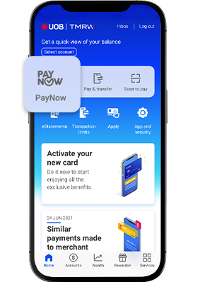 • Step 1: Log in to UOB TMRW and select “PayNow”