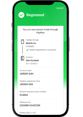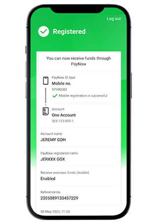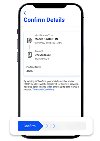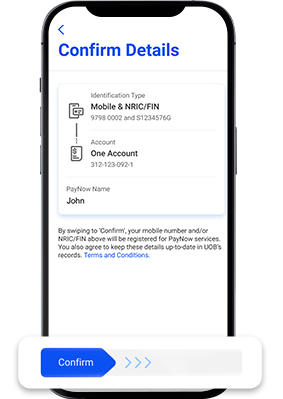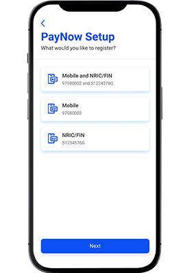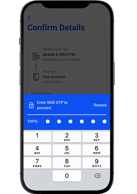 Select the Bank account you wish to link to your mobile number and/or NRIC/FIN.